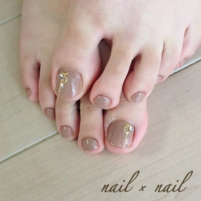 フット シンプル ワンカラー ビジュー ベージュ Nail Nailのネイルデザイン No ネイルブック